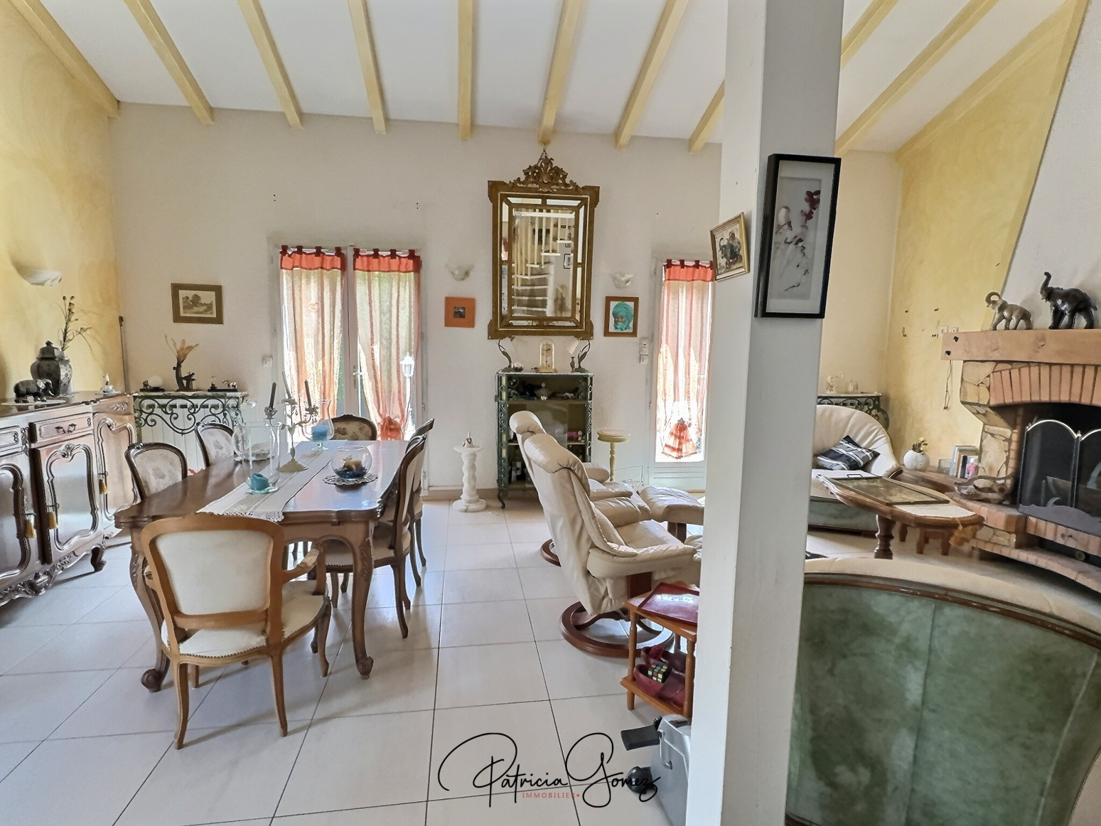 Cette Maison se compose d'une cuisine semi-ouverte sur un vaste salon-séjour lumineux avec cheminée, d'une mezzanine, et d'un bureau.