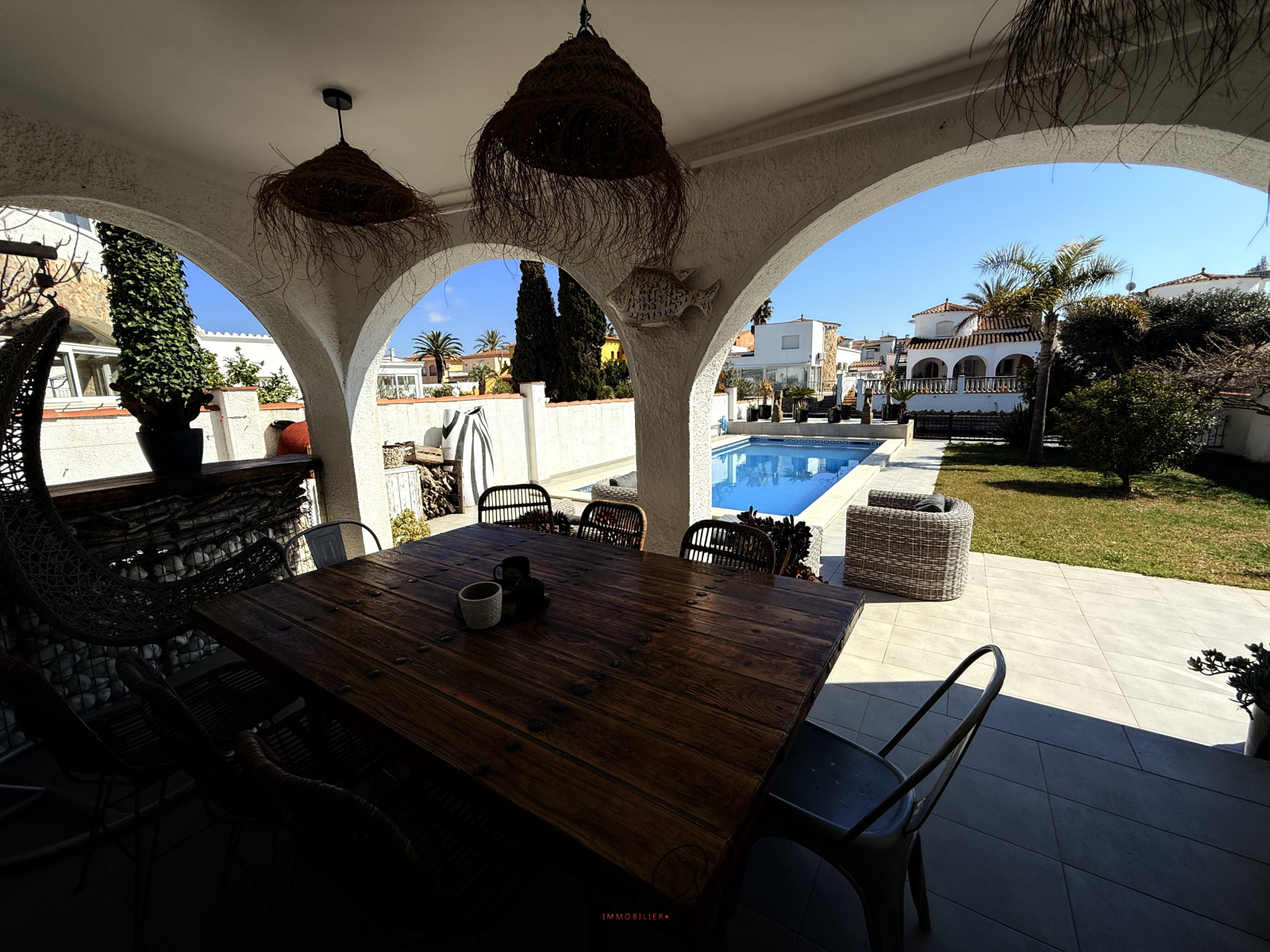 Sur le canal, coté Sud, Cette Marina, de rénovation récente vous propose 165 m2 de surface habitable sur deux niveaux. En rez de chaussée, un grand espace de vie avec cuisine américaine aménagée et équipée, sur un salon séjour donnant sur la terrasse couverte avec accés direct sur la piscine. Deux chambres avec leur salle d'eau et dressing aménagé. Au premier étage, suite indépendante avec une chambre et sa salle d'eau avec terrasse privative.