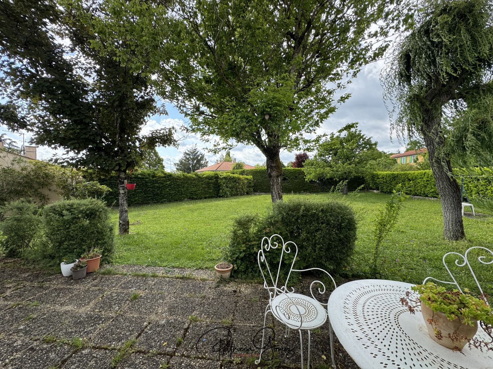 À l'extérieur, vous profiterez d'un trés beau jardin paysagé de plus de 900 m2, parfaitement entretenu, ainsi que d'une agréable terrasse pour vos moments de détente ou vos repas d'été.