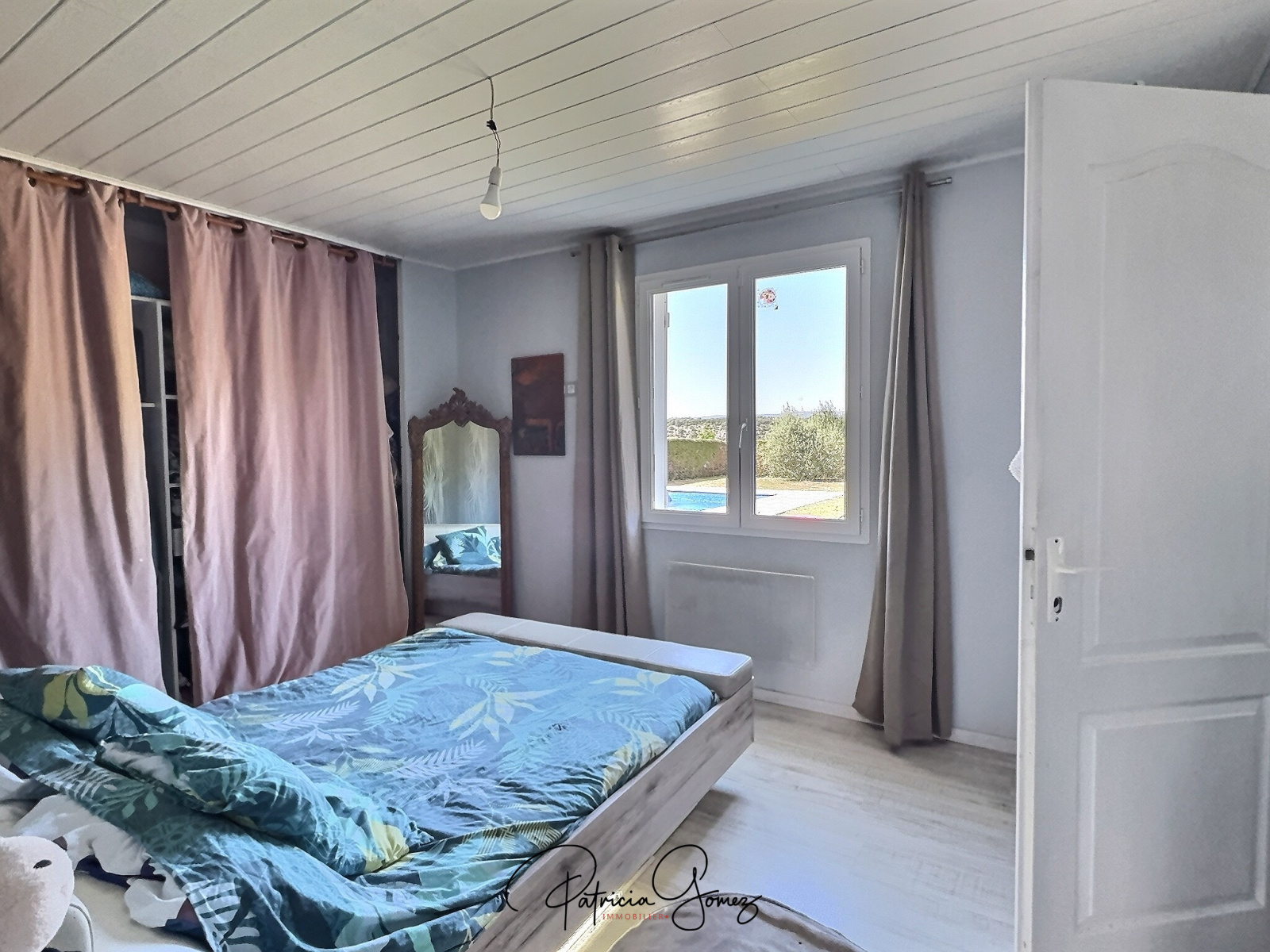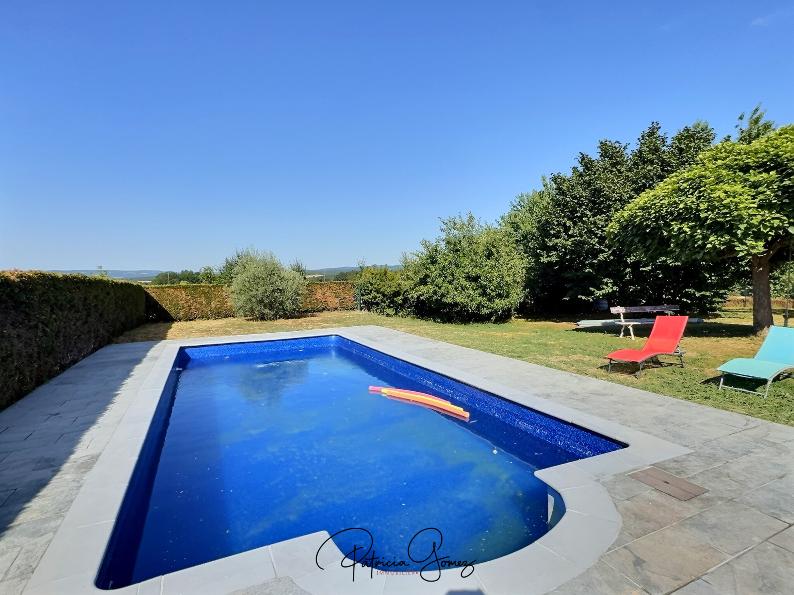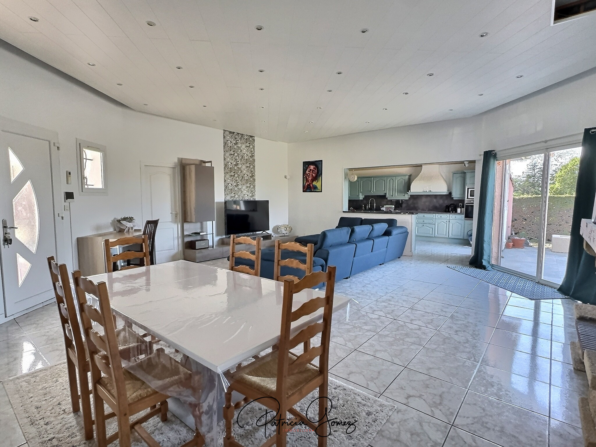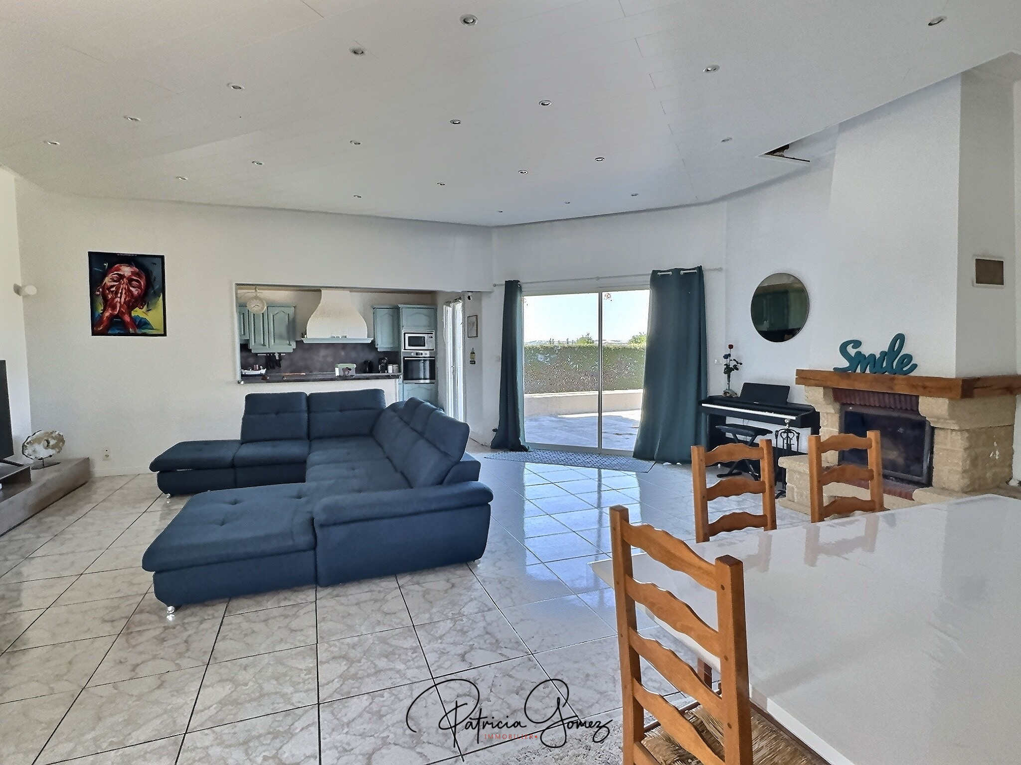 La pièce de vie s’ouvre sur la terrasse trés agréable avec la piscine et le jardin arboré et paysagé, idéal pour profiter des beaux jours avec une vue sur la campagne.